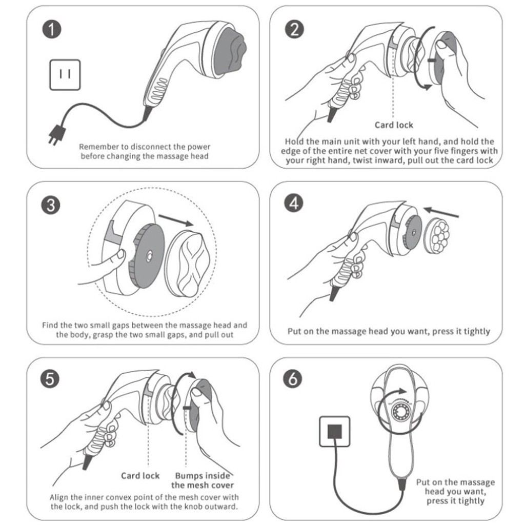 Ao trocar os acessórios, pressione firmemente até o encaixe total. Utilize sempre sobre a pele seca ou com cremes específicos. Evite uso contínuo prolongado em uma mesma região.